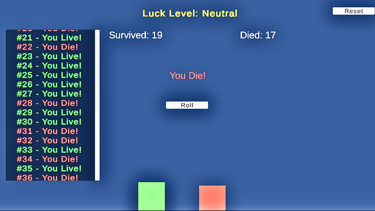 Test your luck with a single click in 50/50 Shot, the free online game where you live or die. Will you survive? See how long you can last directly in your browser! Challenge Fate and Test Your Luck in This Free Online Game Are you feeling lucky? 50/50 Shot is the ultimate game of chance that puts your fate in your own hands. With a simple, tense, and clean design, this game is all about the thrill of the moment. The mission is simple: you press a button, and you either live or die. With every decision, a live or die counter tracks your fate, and a win streak counter records your success. Your "Luck Level" changes colors from green to yellow to red, giving you a visual representation of your chances as you go on. The stakes are high with every click, and every decision is amplified by satisfying sound effects. Why Gamers Love 50/50 Shot: Test Your Luck: This is a true test of chance and a fun way to see just how lucky you really are. Simple, Tense Fun: The minimalist design and high stakes create a thrill that keeps you coming back for one more round. Track Your Fate: Keep a close eye on your survival and death counts to see your luck level change over time. Free & Instantly Playable: Experience the ultimate game of chance with no downloads or cost. Are you ready to face your fate? Play this free game now and see if you can beat the odds!